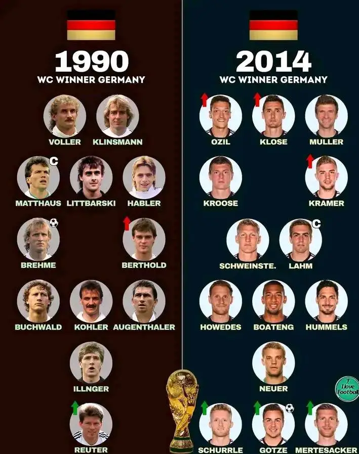 Die letzten beiden Weltmeistertitel Deutschlands gehören zu den größten Momenten der Fußballgeschichte – zwei goldene Kapitel, die Generationen geprägt und Millionen von Fans weltweit bewegt haben. ⚽ Zwischen 1990 und 2014 liegen fast ein Vierteljahrhundert, doch beide Triumphe zeigen die gleiche DNA: Leidenschaft, Disziplin, und die unerschütterliche Siegermentalität der Deutschen.