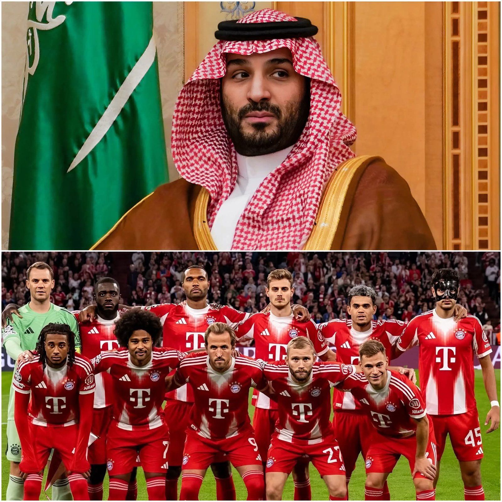 Mit diesen dramatischen Worten soll laut einem in Umlauf gebrachten Szenario der saudische Milliardär Mohammed Al Saud, angeblich Präsident des Public Investment Fund (PIF), seine Absicht verkündet haben, den deutschen Spitzenverein FC Bayern München zu übernehmen. Er habe zudem eine „enorme Summe“ auf den Tisch gelegt — und einen ambitionierten Plan präsentiert, um den Klub zu einer neuen „Galaxie“ im Weltfußball zu formen.
