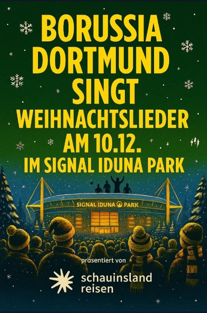 Borussia Dortmund lädt Fans am 20. Dezember zu einem ganz besonderen Ereignis ein: Unter dem Motto „Weihnachtszauber im SIGNAL IDUNA PARK“ soll das Stadion in festlichem Goldgelb erstrahlen und die Südtribüne zu einem singenden Chor der Emotionen werden.