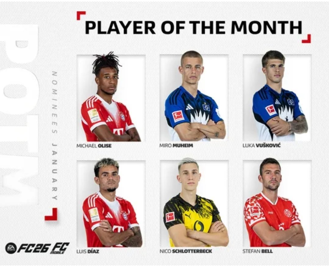 Im Rennen um den Titel gilt Michael Olise als absoluter Favorit. Der französische Offensivspieler spielte im Januar herausragend, war an nahezu allen entscheidenden Aktionen des FC Bayern beteiligt und lieferte konstant Tore und Vorlagen ab. Laut externen Berichten war Olise in fünf Bundesliga‑Spielen mit drei Toren und acht Assists der Spieler mit den meisten direkten Torbeteiligungen im Monat und führte sein Team zu mehreren wichtigen Ergebnissen.